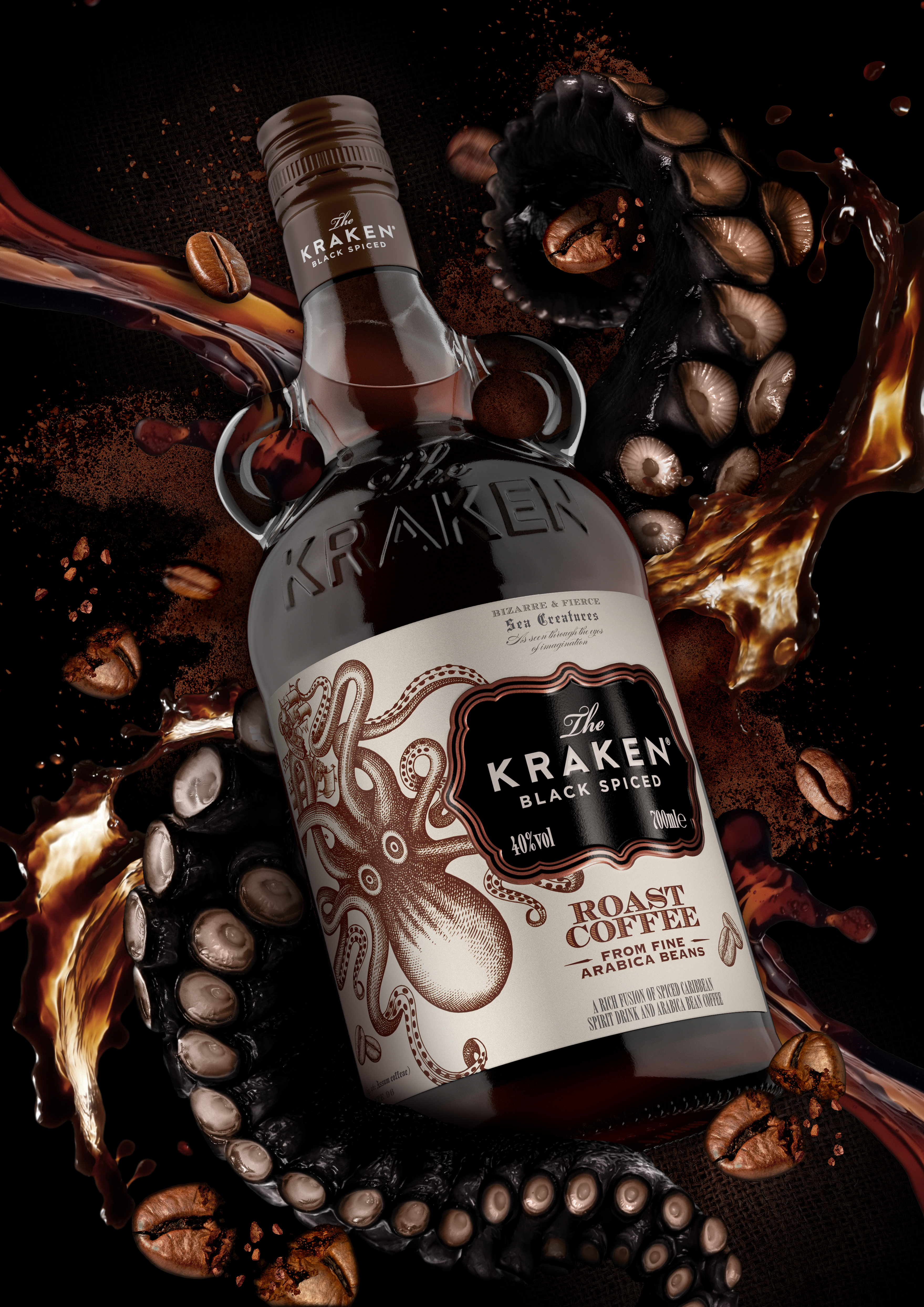 Im Duft beeindruckt der tiefschwarze Rum mit Noten von Karamell, Toffee und Gewürzen. Der Geschmack nach Zimt, Muskatnuss und einem Hauch von Vanille macht diesen Rum zu einem ungeheuerlichen Geschmackserlebnis, abgerundet durch den würzigen lang anhaltenden Abgang. Der Kraken Roast Coffee lässt sich ideal pur und gekühlt genießen oder eignet sich perfekt für besondere Cocktail-Kreationen wie zum Beispiel dem düsteren Espresso Rumtini.
